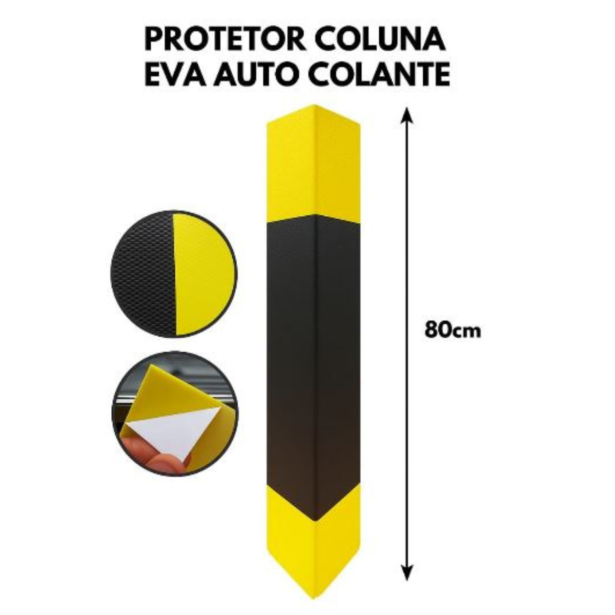 Proteção ideal para quinas de paredes e pilares em garagens, estacionamentos e áreas industriais. Fabricada em material emborrachado resistente com superfície texturizada e faixa amarela para maior visibilidade. Fácil de instalar, possui adesivo de alta fixação. Medida: 80cm de comprimento.
